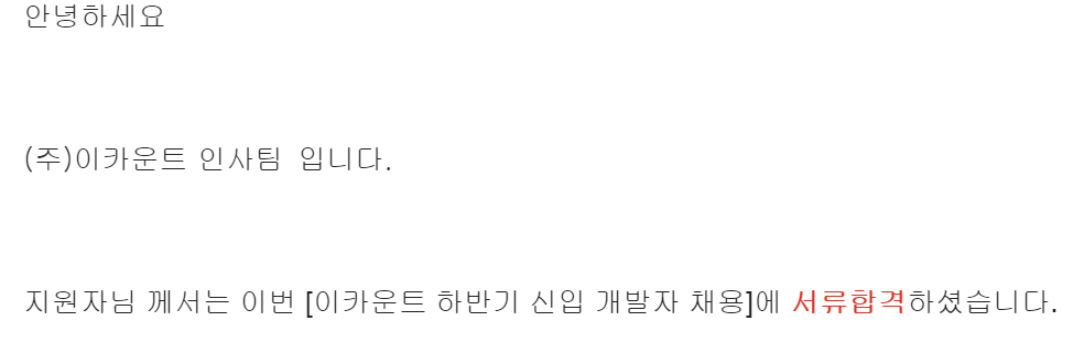 자기소개서를 따로 쓰지 않았기 때문에 떨어졌을 거라 생각했는데, 서류에 합격했다..!